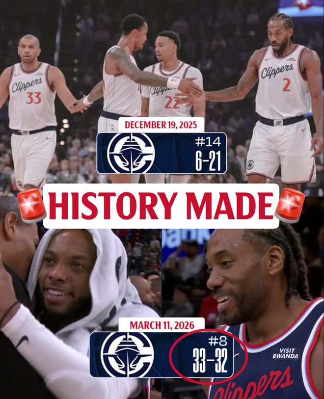 这场比赛后快船33胜32负胜率已经超过五成,快船成为NBA历史上第一支在开赛落后15场还能打回胜率五成的球队,在6胜21负后他们拿到了27胜11负。很明显伦纳德就是快船能完成这样丰功伟绩的关键球员。